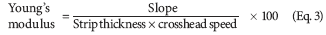 Ung' s modul eller elastisk modul. Young' s modulus eller elasticitetsmodul är måttet på filmens styvhet. Det representeras som förhållandet applicerad spänning dividerat med belastningen i området för elastisk deformation: